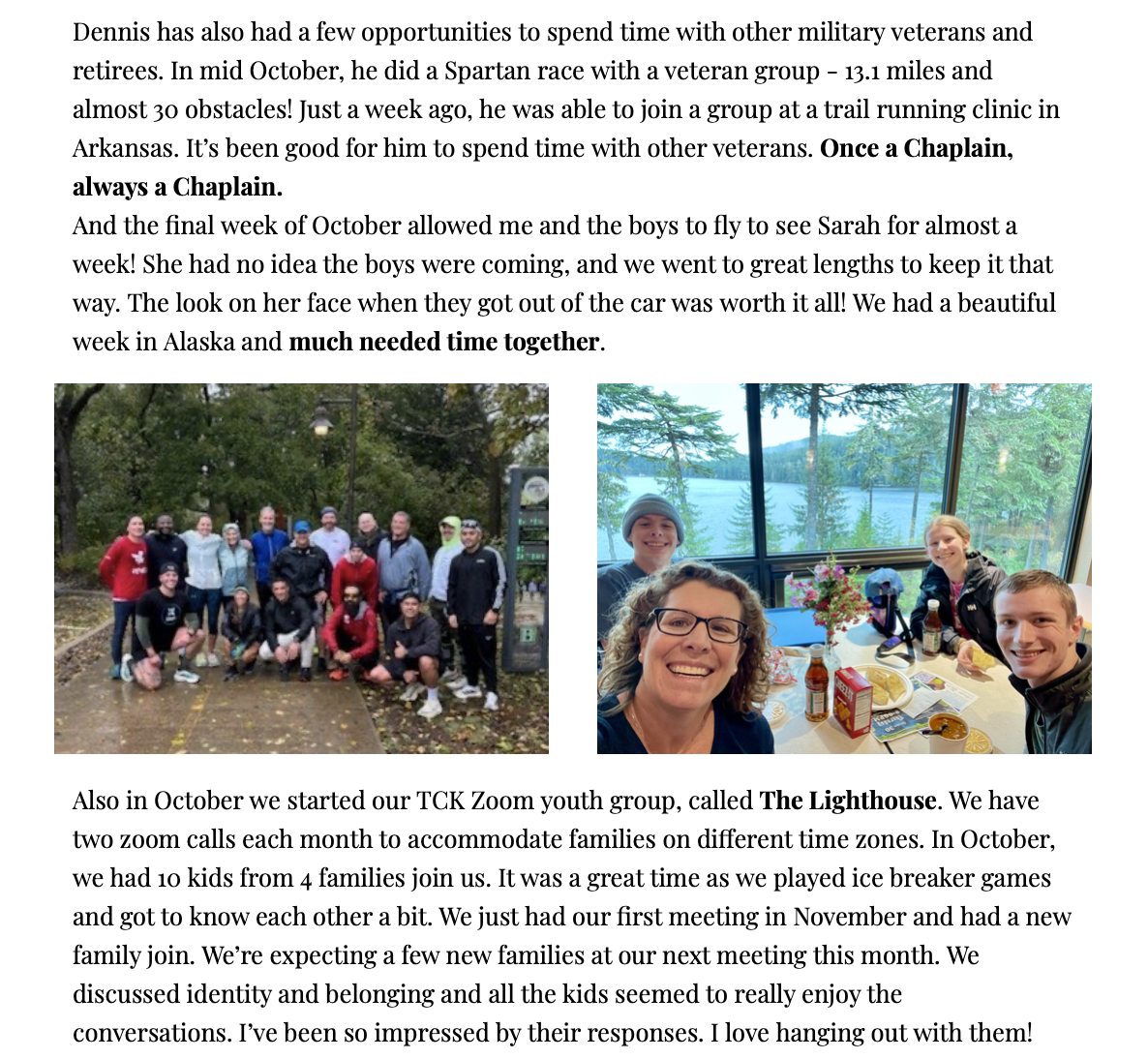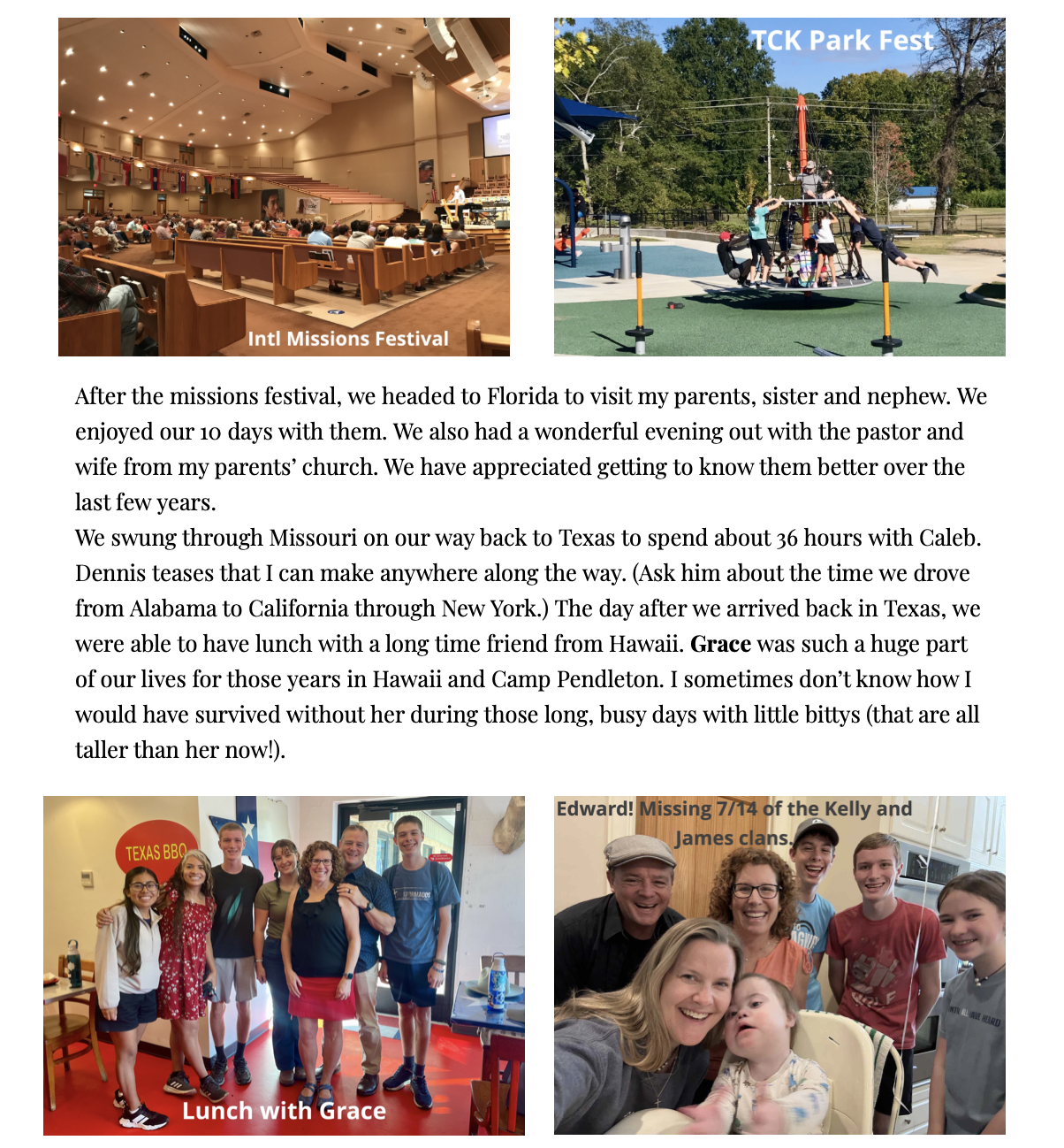 The very nature of our ministry, reaching out to serve those who serve, means we’re constantly on the move. We’re only in a place a short time. We connect quickly. Our kids connect even faster. (I have to say, it’s amazing how fast our kids connect. I am SO proud of them.) And then we leave. It’s hard on us and it’s hard on the missionaries. These families have left their homes to make a new home in the place God called them to serve. For some it’s a lifetime and others, it’s a season, and it’s just hard. They’re in a new place, finding a new grocery store, making new friends, and many times even in a new language. (Tangent – Missionary kids are remarkable. They’re called Third Culture Kids. They are usually from one culture, live in a second, but become a blend of the two – creating a unique third culture. It’s sometimes difficult for them to feel like they ever fit in. Next time you meet a missionary kid, tell them you think they’re awesome, because they are.)